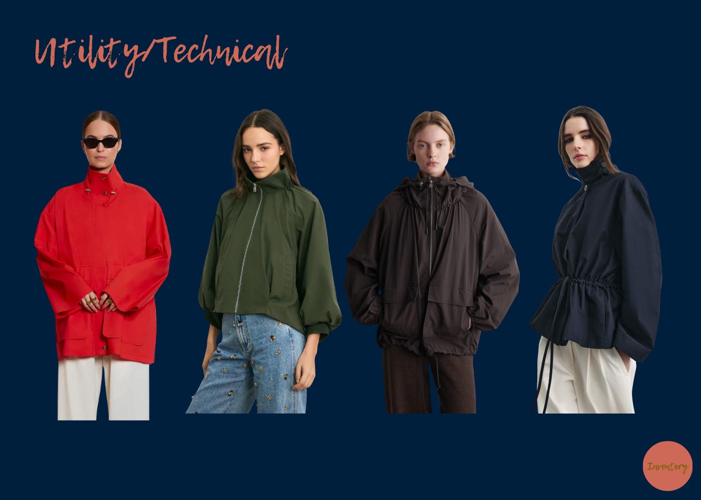 L-R: Janssen Trench Jacket, Circe Bubble Jacket, Technical Hooded Parka Jacket, Belted Parka Jacket